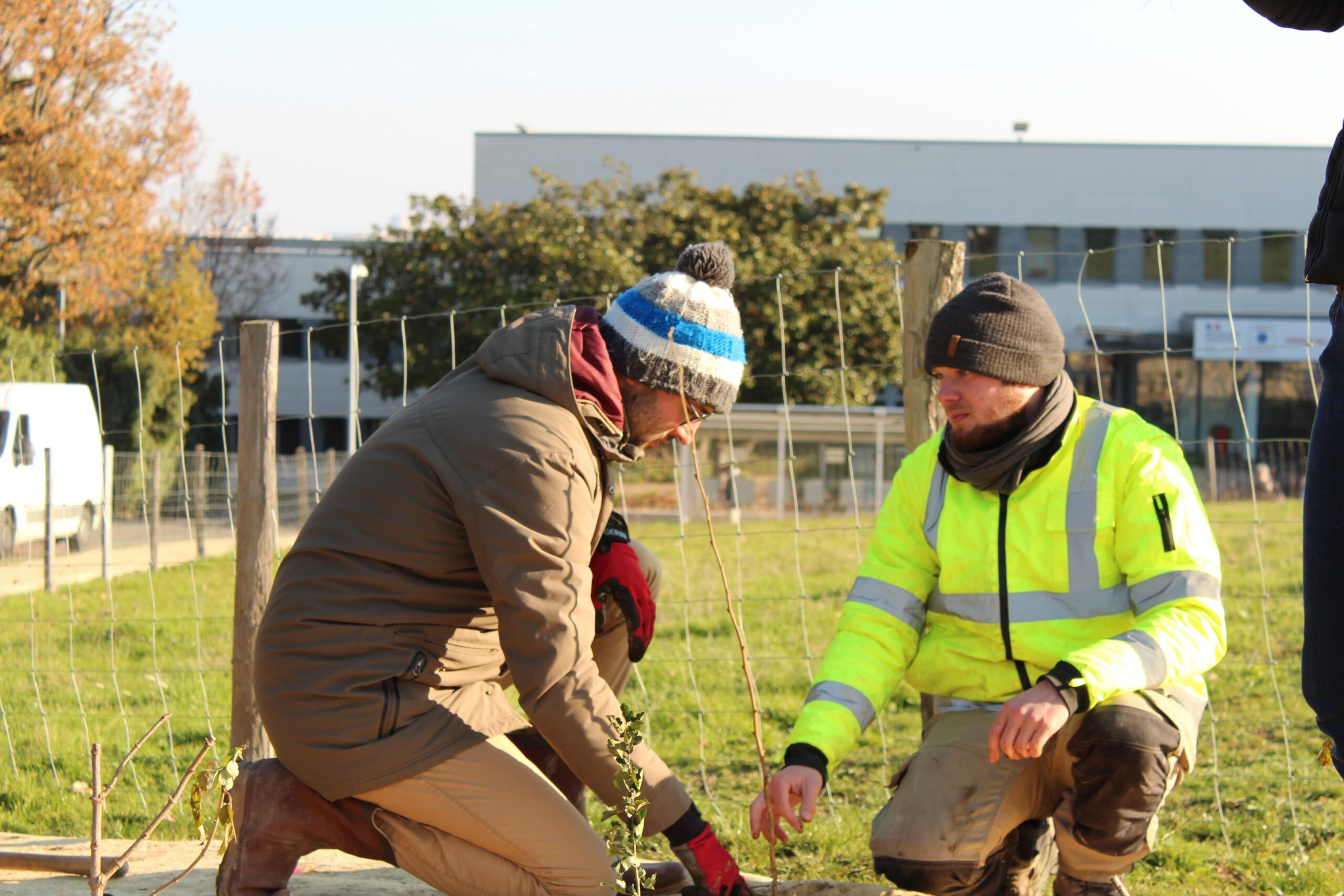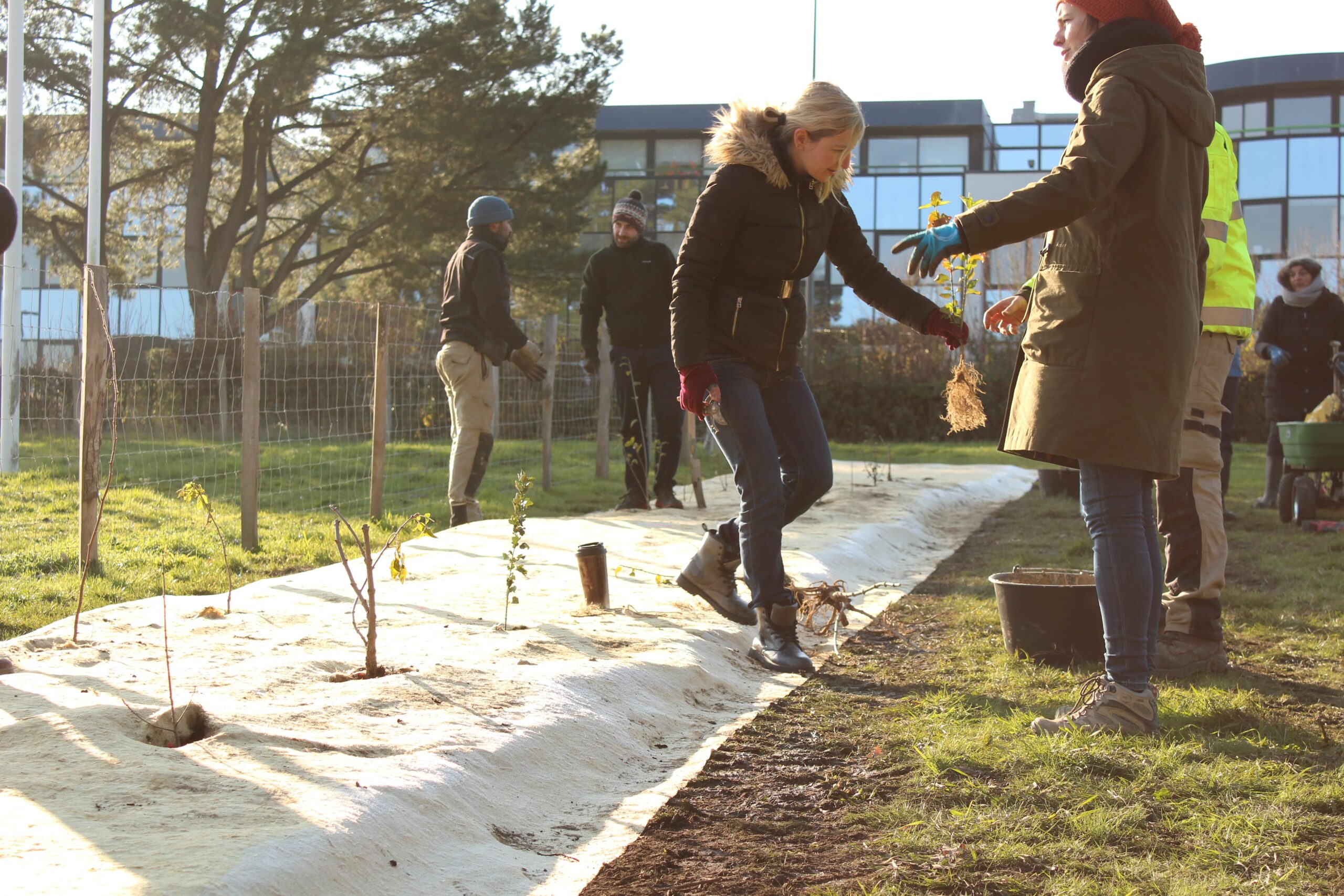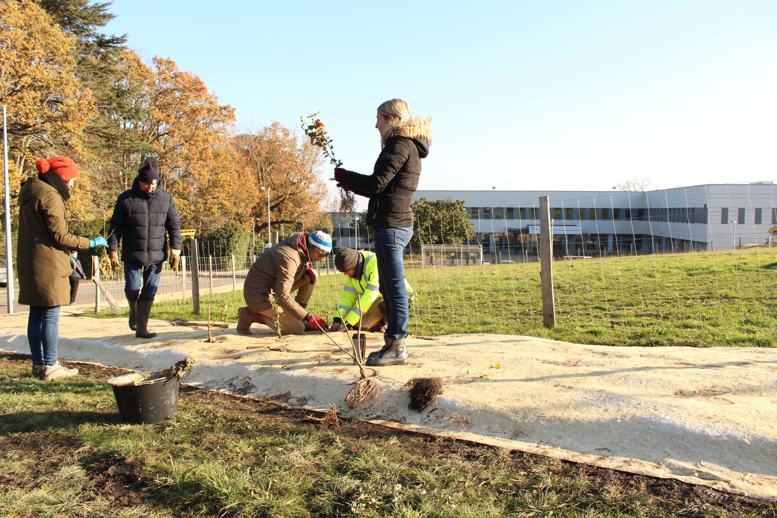 Les 13 et 14 décembre derniers, nous avons animé 3 ateliers participatifs de plantation de haie champêtre sur le site de l’ADEME à Angers, l’Agence de la transition écologique !