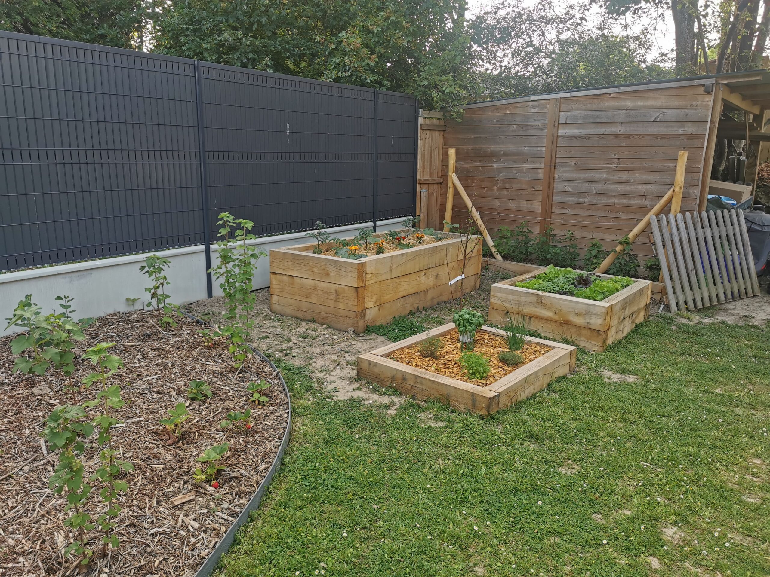 Au sein de Résiliences nous pouvons créer sur mesure des pergolas en structure bois et métal pour faire grimper des végétaux et profiter de l’été au frais. Nous réalisons également des terrasses en bois européen avec différents designs, des abris pour ranger des vélos, du bois de chauffage ou simplement pour du stockage. Les abris peuvent être accompagnés d’une toiture plate végétalisée ou plus classique, sans végétal. Nous pouvons aussi tout à fait construire vos bacs potagers pour faciliter vos entretiens et récoltes.