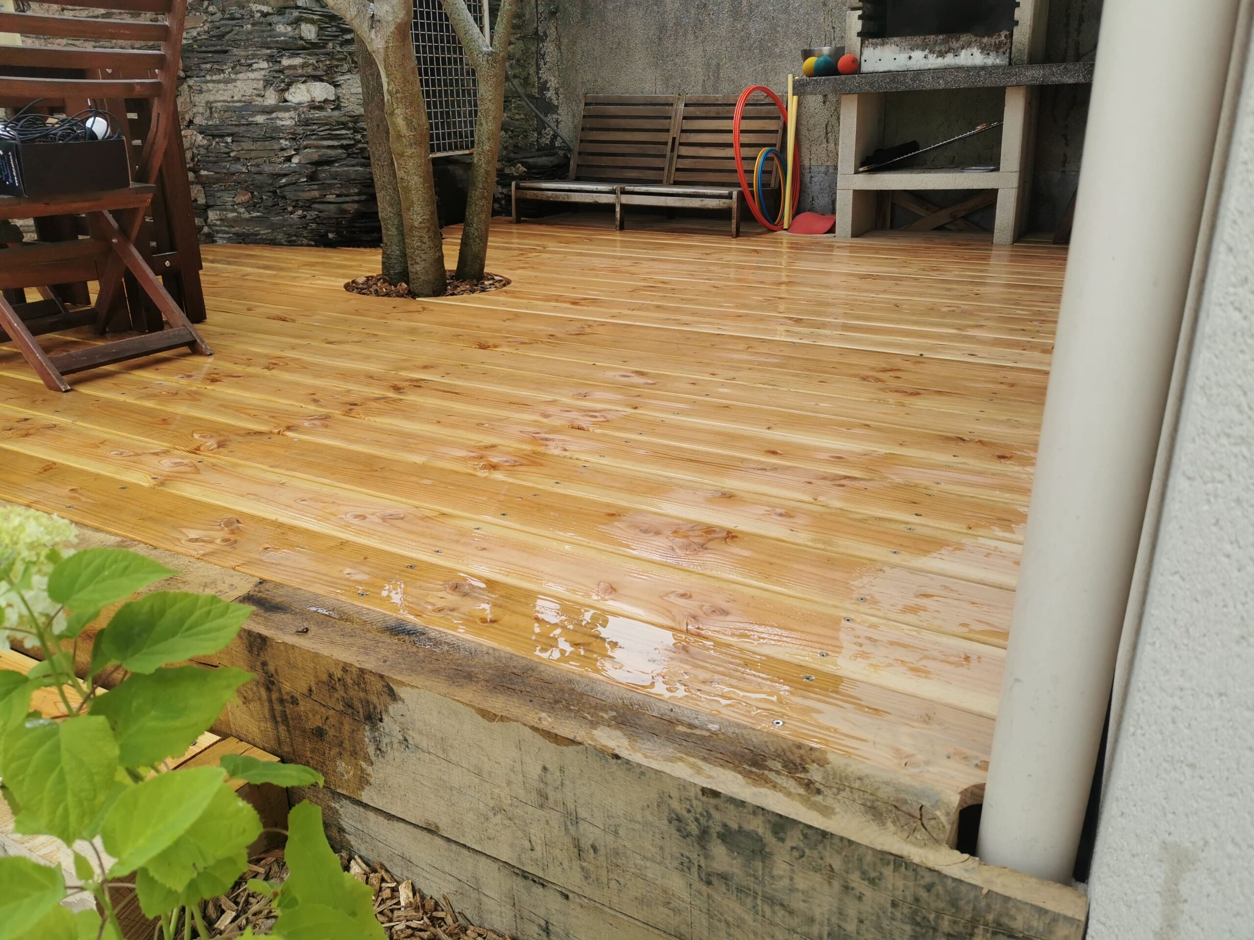 Nous avons par conséquent fait le choix de travailler avec des essences plus locales qui sont tout à fait adaptées aux conditions extérieures. Il s’agit d’essences pour lesquelles nos fournisseurs sont plus à même de nous certifier leur provenance et leur mode d’exploitation. C’est fondamental pour nous dans la mesure où nous mettons un point d’honneur à placer les arbres au centre de nos conceptions. C’est ainsi que nous utilisons du chêne classe 3 naturelle, du douglas classe 3 naturelle issues de forêts Françaises et parfois du robinier classe 4 naturelle pour les terrasses. Ce dernier est comparable à du bois exotique en termes de qualité et durée de vie.