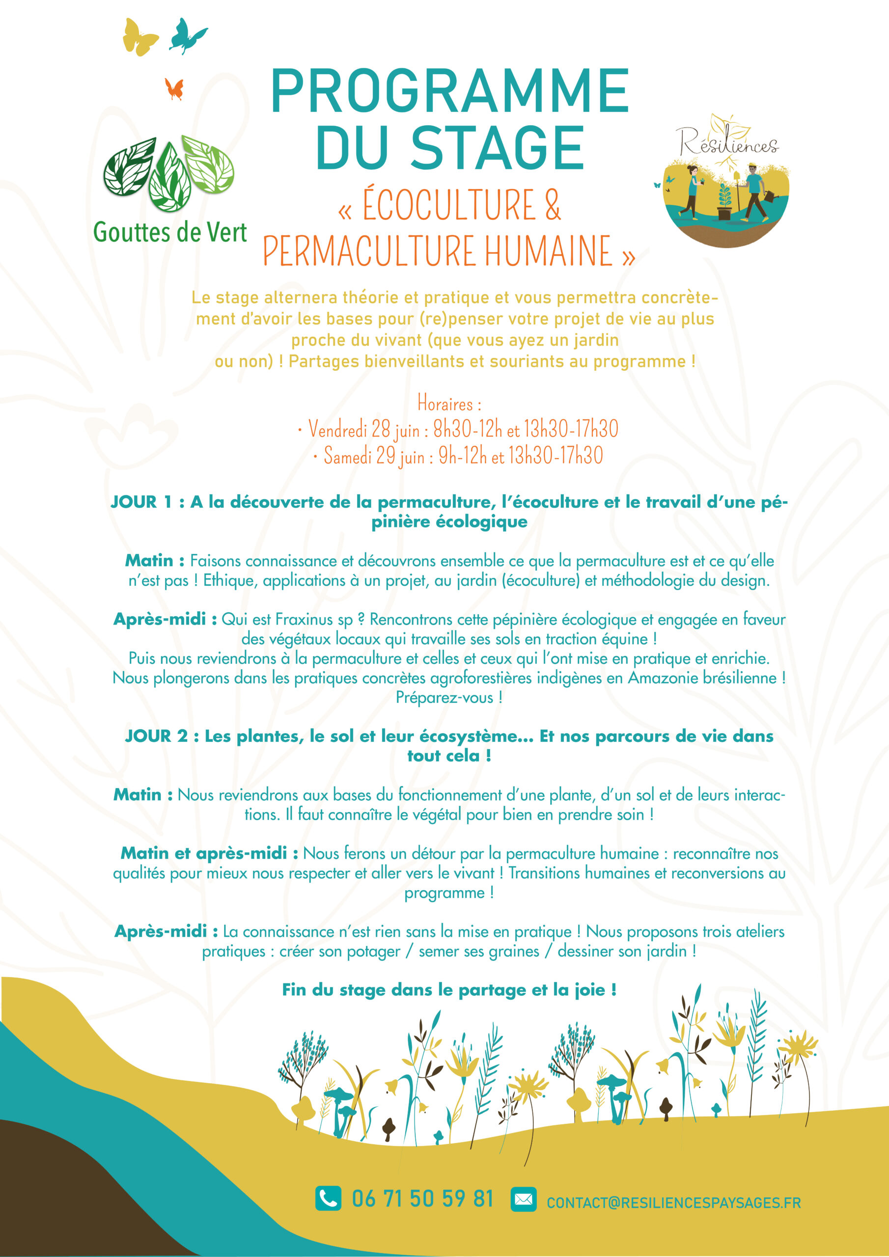 Ca y est 🥳 ! Nous lançons notre tout premier stage d’initiation à la permaculture : écoculture et permaculture humaine (28 et 29 juin 2024), en co-animation avec Gouttes de Vert, à la pépinière Fraxinus sp 😍 !